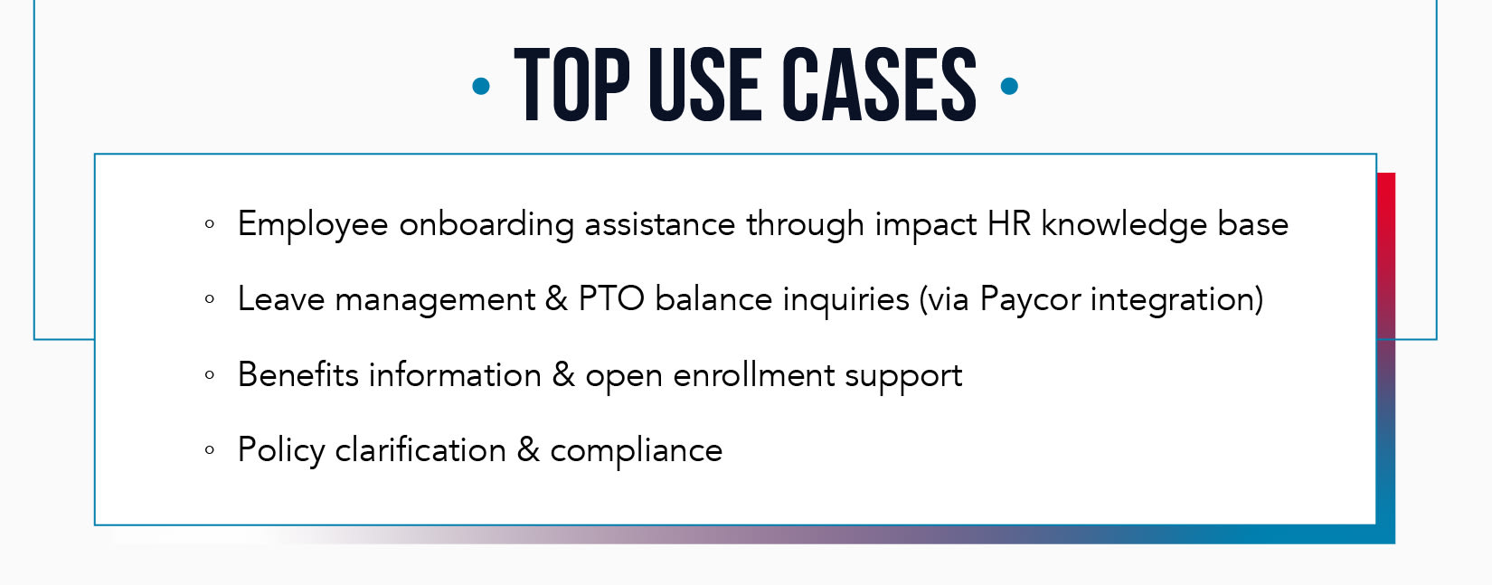 Impact desperately needed a solution that would provide instant, accurate responses to routine HR questions, freeing up our team for more meaningful work.