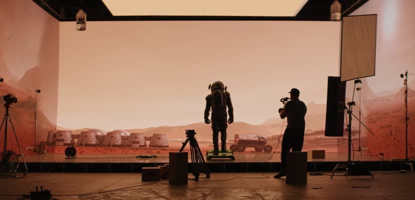 Our state-of-the-art virtual production screen gives you full control over the shooting environment. Shoot footage in Antarctica, the Sahara, or even on the moon, all from the comfort of Chicago. Make any hour magic hour, or remove core elements of your background with the push of a button. This innovative screen allows you to quickly make changes and react in real time, making for more immersive videos, shorter shooting days, and more cost-effective productions.